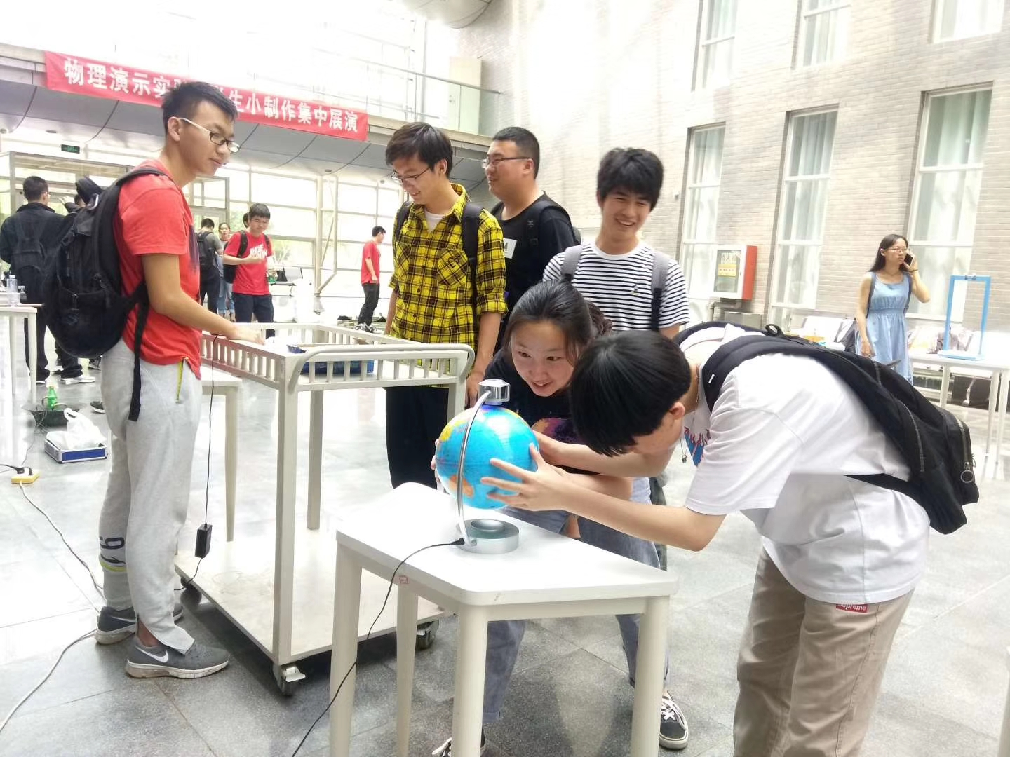 学生进入到演示实验大厅,当见到了许多实实在在的物理演示仪器,都表现出了极大的热情和兴趣去动手操作,有的学生还拍摄了视频发给家长,发到朋友圈。