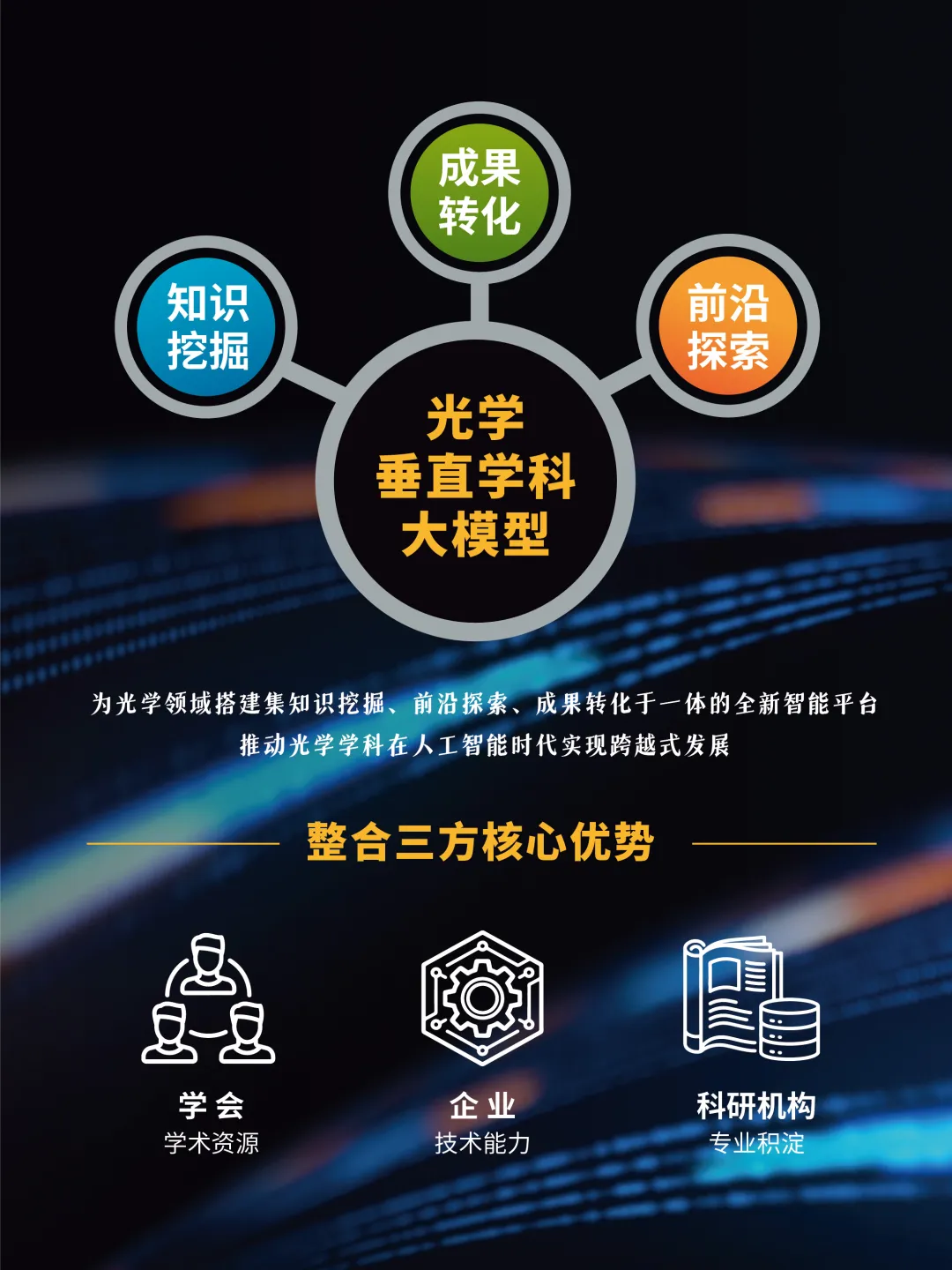 光学垂直学科大模型是集知识挖掘、前沿探索、成果转化于一体的全新智能平台,共建合作整合了三方核心优势,包括学会的学术资源、企业的技术能力、科研出版机构的专业积淀,将推动光学学科在人工智能时代实现跨越式发展。