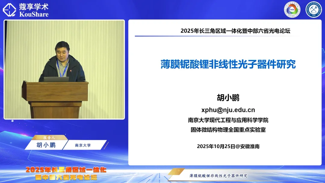 10月24日至26日, “2025年长三角区域一体化暨中部六省光电论坛”在安徽淮南成功举办。在安徽省科协支持下,本次大会由安徽省光学学会主办,安徽理工大学承办,上海市光学学会、江苏省光学学会、浙江省光学学会、山西省光学学会、湖南省光学学会、河南省光学学会、湖北省光学学会、江西省光学学会、中国光学学会环境光学专委会、中国科学院合肥物质科学研究院等单位协办。来自国内高校、科研院所、光电企业的专家学者200余人现场参会,蔻享学术直播在线观众总计超8万人次。