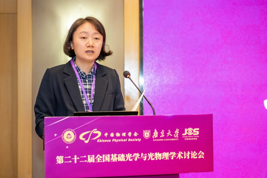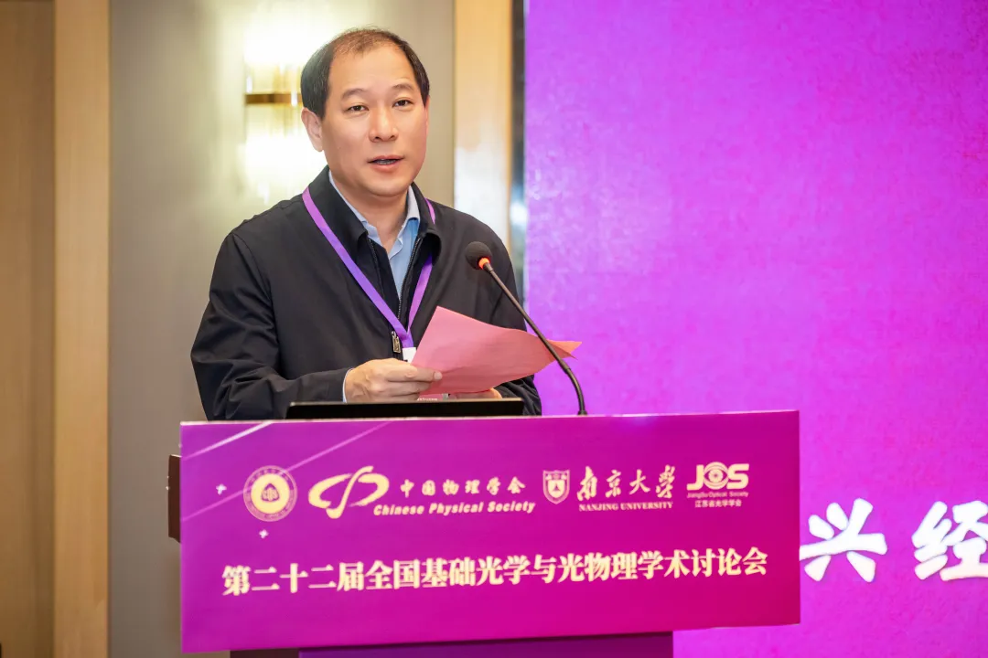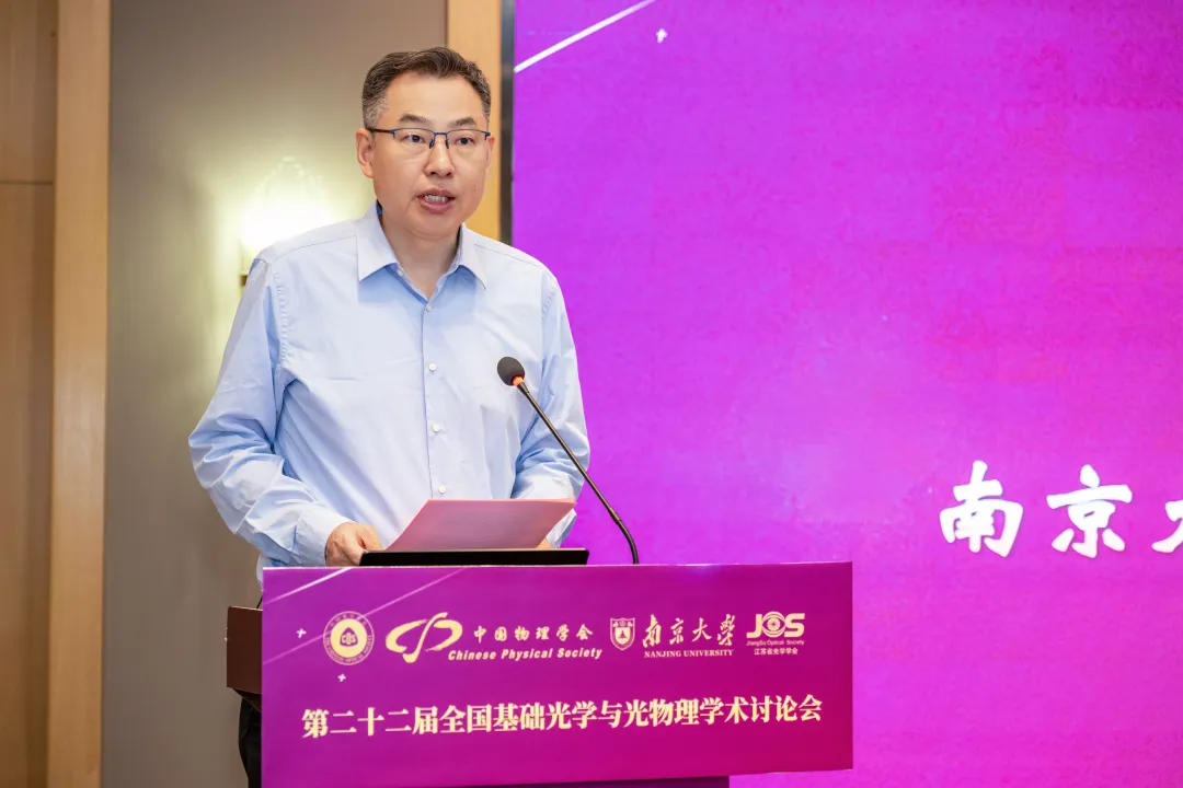 鞠艳表示,南京大学物理学科历史悠久、成绩斐然,未来将持续秉承“诚朴、雄伟、励学、敦行”的校训,扎实工作,团结奋斗。期望会议成为光学科研人员交流思想、促进合作、激发创新的平台。