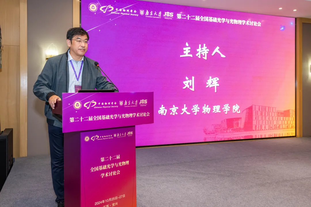 2024年10月25日至27日,由中国光学学会基础光学专业委员会、中国物理学会光物理专业委员会联合主办,南京大学物理学院与江苏省光学学会联合承办的“第二十二届全国基础光学与光物理学术讨论会”在江苏宜兴顺利召开。中国光学学会副理事长、专委会主任、大会主席刘运全教授,南京大学党委常委、副校长王振林教授,南京大学物理学院书记鞠艳,宜兴市委常委、开发区党工委副书记、管委会主任虞仁军出席开幕式并致辞。开幕式由南京大学物理学院副院长刘辉主持。开幕式上,刘运全对与会专家、代表的到来表示欢迎。他强调,光学作为一门古老而又前沿的科学,始终在推动着人类的科学进步和技术革新。从经典光学的建立,到现代非线性光学,量子光学,再到光电子、光通信和光学成像技术的迅猛发展,已逐渐成为推动社会发展、造福人类生活最重要的科学领域。光学技术逐渐渗透到社会生活的方方面面,为信息产业、医疗健康、能源利用、国防安全等诸多领域注入了新的活力和动能。基础光学专委会有着40多年的悠久历史,第一届专委会主任是由我国光学泰斗、学会首任理事长王大珩先生担任,上一届专委会主任、北京大学龚旗煌院士为专委会的发展做出了重要贡献。同时,感谢宜兴市地方政府、南京大学物理学院为会议顺利举办所做出的贡献。