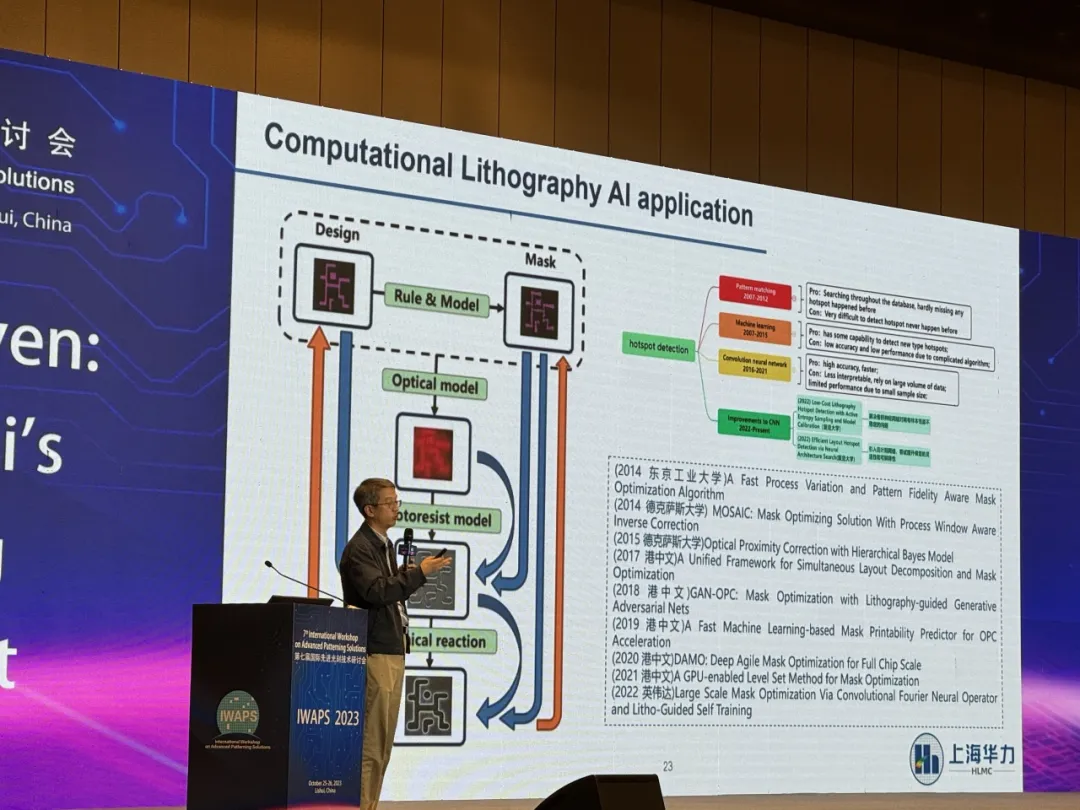 在本演讲中,我将回顾人工智能在芯片制造领域的发展,分析这种生成模式与过去传统人工智能方法的异同,以及它们对芯片行业的影响。并说明我们如何从人工智能辅助向人工智能驱动迁移。结合华力AMTD在人工智能应用中对生成模型的应用,我们还将讨论生成模型在芯片行业应用中可能的方向和挑战。