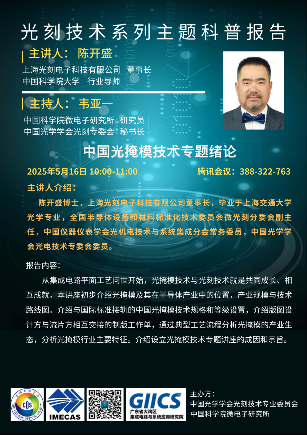 【2025年“国际光日”】中国光学学会光刻技术专业委员会:光刻系列讲座——中国光掩模技术专题绪论