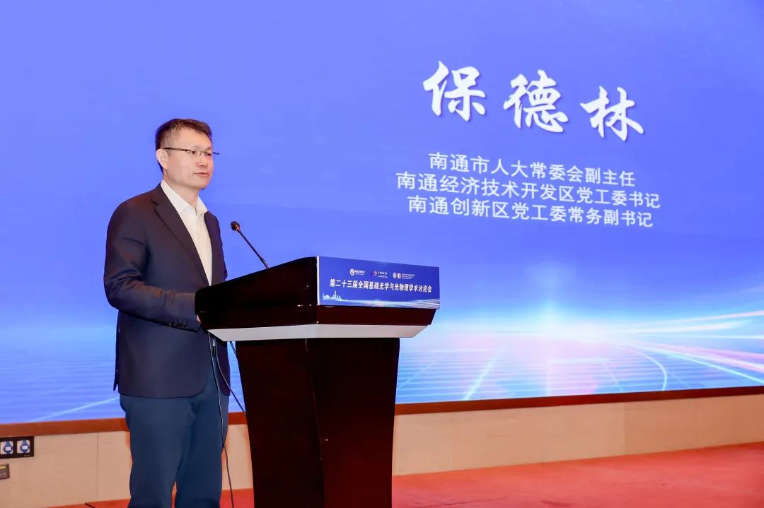 上海科技大学党委书记李儒新院士,河南省科学院院长徐红星院士,国家自然科学基金委员会数学物理科学部副主任倪培根,南开大学原常务副校长许京军,上海科学院院长孙真荣,中国科学院精密测量科学与技术创新研究院党委书记柳晓军,南通大学校长王建浦,吉林工程技术师范学院校长王洪福,中国科学院合肥物质科学研究院副院长屈哲,太原理工大学副校长肖连团;南通市人大常委会副主任、南通经济技术开发区党工委书记、南通创新区党工委常务副书记保德林;中国光学学会副理事长、基础光学专委会主任、研究院院长刘运全,中国光学学会常务理事、中国国际光电博览会秘书长杨耕硕等领导嘉宾,以及会议共主席中国科学院物理研究所研究员李玉同,厦门大学教授陈理想,南京大学教授刘辉,复旦大学教授田传山出席了本次会议。