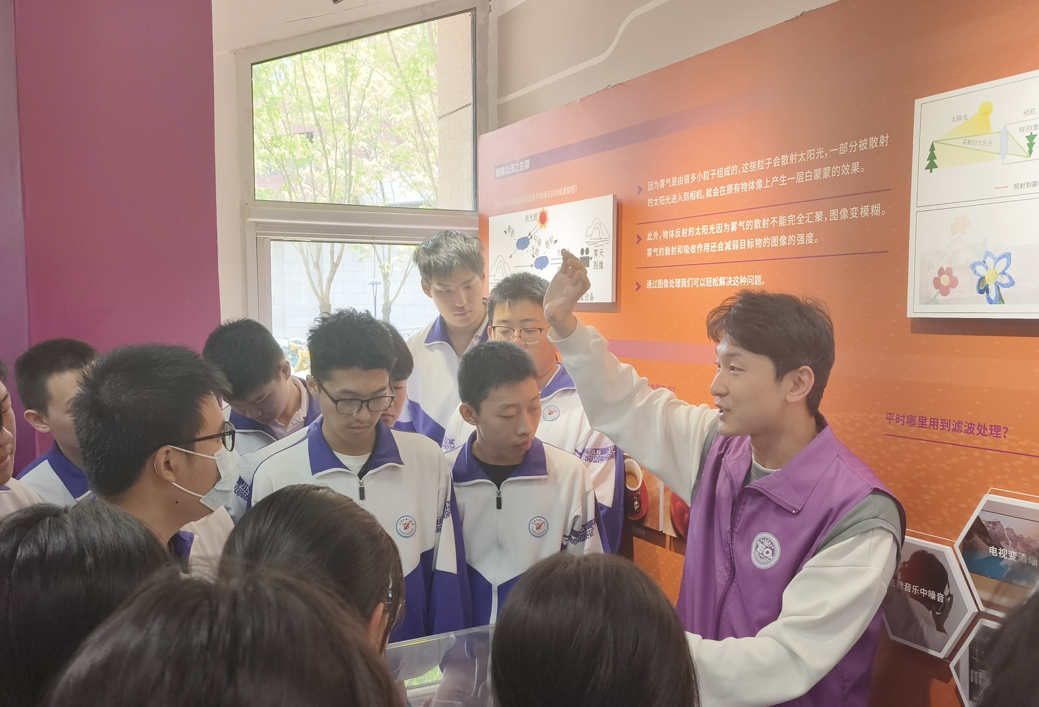 在现代光学研究所前沿成果展区,超快光学、太赫兹器件、光纤光子学、微纳光学等领域的科研成果一一呈现。志愿者通过深入浅出的讲解,引导同学们了解光学技术的前沿突破及其在推动科技发展、服务社会中的重要意义。