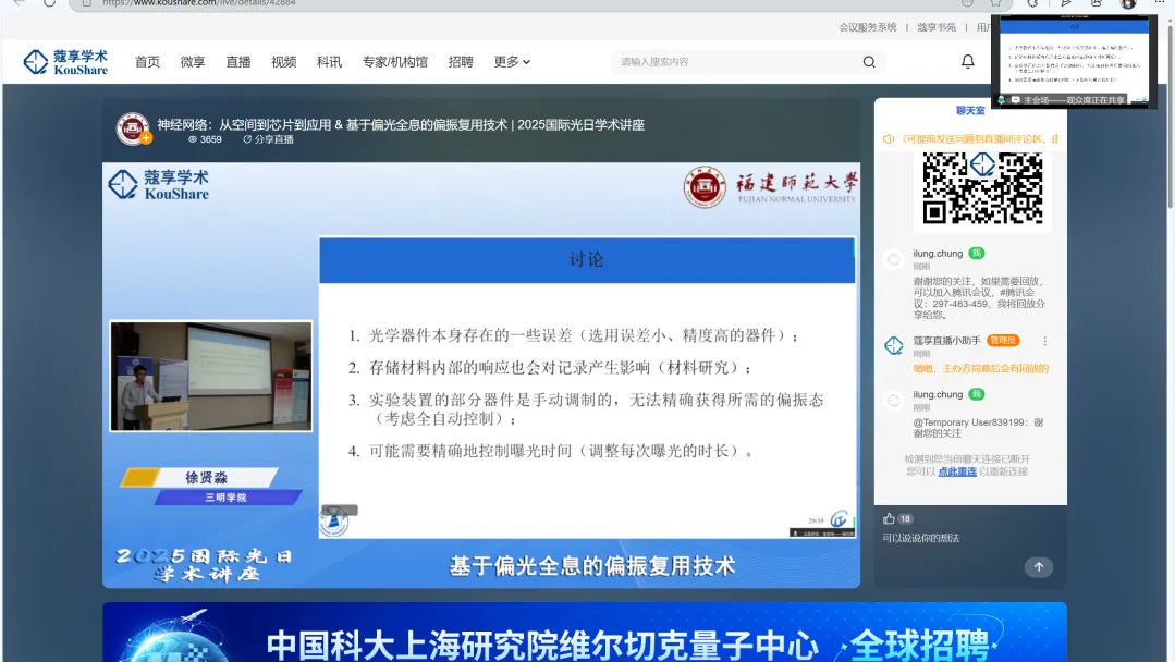 为了扩大宣传力度,让更多的人参与到活动中,此次学术报告采取了线上和线下共同参与的形式。据实时统计,在线人数听会人数共计3600人。与会者纷纷表示,通过此次学术报告,有效打通了理论认知与产业应用间的关键连接点,为光学研究提供了可靠的创新思路。