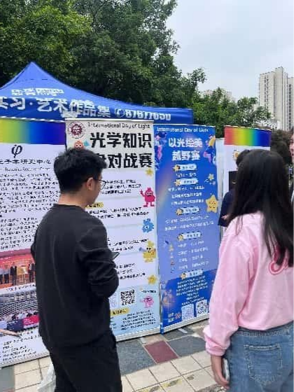 福建师范大学信息光子学研究中心的同学还积极进行了后续活动的宣传预热,邀请同学们踊跃参与即将举办的光学知识“寻光逐影”棋盘对战赛、“光构万象”照片征集和“光语者”你说我猜活动以及“以光绘美”越野赛;同时,中心也诚邀各位同学参与国际光日学术活动,一同探索光学前沿知识。