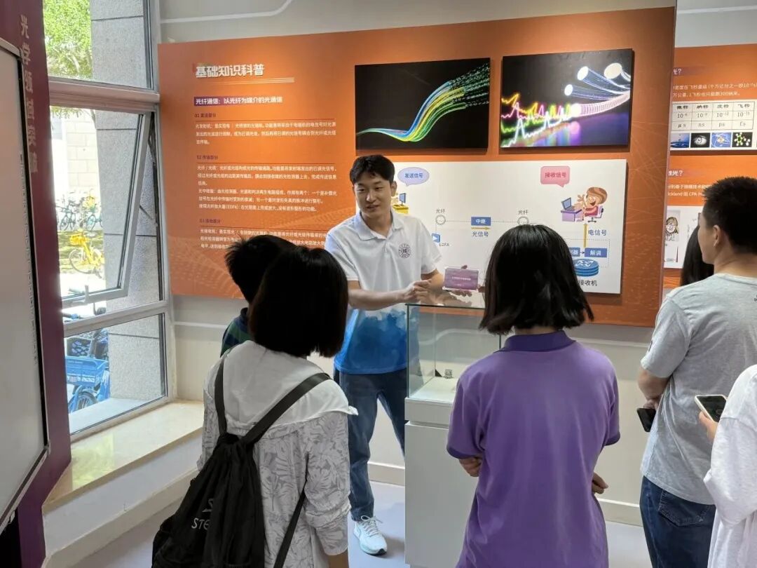 第二板块聚焦现代光学研究所的前沿科研成果,集中展示了超快光学、太赫兹器件、光纤光子学、微纳光学、显微成像等前沿领域的最新研究进展。参观者在志愿者们绘声绘色地讲解下,了解到当前光学研究的技术突破与应用前景,以及光学研究在推动科技进步、服务社会发展等方面发挥的重要作用。