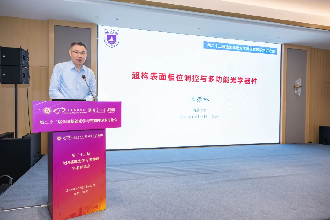 2024年10月25日至27日,由中国光学学会基础光学专业委员会、中国物理学会光物理专业委员会联合主办,南京大学物理学院与江苏省光学学会联合承办的“第二十二届全国基础光学与光物理学术讨论会”在江苏宜兴顺利召开。中国光学学会副理事长、专委会主任、大会主席刘运全教授,南京大学党委常委、副校长王振林教授,南京大学物理学院书记鞠艳,宜兴市委常委、开发区党工委副书记、管委会主任虞仁军出席开幕式并致辞。开幕式由南京大学物理学院副院长刘辉主持。开幕式上,刘运全对与会专家、代表的到来表示欢迎。他强调,光学作为一门古老而又前沿的科学,始终在推动着人类的科学进步和技术革新。从经典光学的建立,到现代非线性光学,量子光学,再到光电子、光通信和光学成像技术的迅猛发展,已逐渐成为推动社会发展、造福人类生活最重要的科学领域。光学技术逐渐渗透到社会生活的方方面面,为信息产业、医疗健康、能源利用、国防安全等诸多领域注入了新的活力和动能。基础光学专委会有着40多年的悠久历史,第一届专委会主任是由我国光学泰斗、学会首任理事长王大珩先生担任,上一届专委会主任、北京大学龚旗煌院士为专委会的发展做出了重要贡献。同时,感谢宜兴市地方政府、南京大学物理学院为会议顺利举办所做出的贡献。