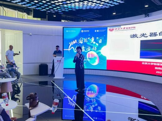 活动中,北京大学物理学院2023、2024级光子技术与应用光学专业的硕士研究生组成科普团队,以专业视角精心策划内容。在专题报告环节,团队通过"激光器的历史与未来"和"从自然光到激光的奇妙旅程"两场讲座,系统介绍了激光技术的发展历程,并以生动易懂的语言阐述了激光在通信、医疗、制造等领域的广泛应用,帮助青少年构建光学知识体系。此外,团队还通过"于敏与氢弹"和"郭永怀的科学人生"两场专题报告,结合影像资料与科研故事,展现了科学家们将个人理想融入国家需求的伟大精神,激发了青少年的爱国情怀与科学报国志向。